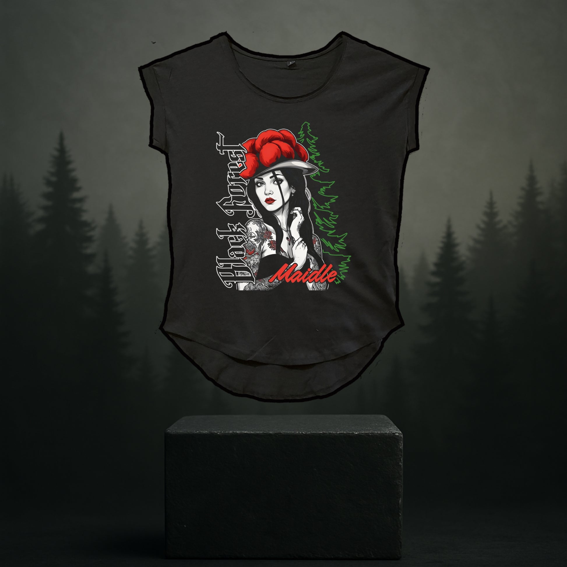 Das Black Forest Maidle T-Shirt ist für Frauen gemacht, die wissen, wo sie herkommen – und dabei ihren ganz eigenen Weg gehen. Locker geschnitten, angenehm zu tragen und mit einem klaren Statement auf der Brust: „Maidle“ – modern interpretiert, aber tief verwurzelt.
